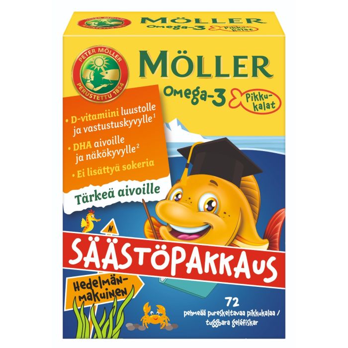 MÖLLER OMEGA-3 PIKKUKALAT 72 KPL JÄTTIPAKKAUS HEDELMÄNMAKUINEN