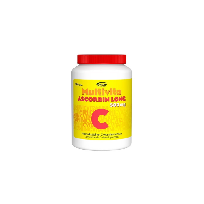 Pitkävaikutteinen nieltävä C-vitamiinitabletti sisältää 500 mg C-vitamiinia. Helposti nieltävä pitkävaikutteinen tabletti hajoaa normaalia tablettia hitaammin ja vapauttaa tasaisesti C-vitamiinia. Laktoositon, gluteeniton, hiivaton, sokeriton. Sopii myös vegaaneille - ei sisällä liivatetta tai muita eläinperäisiä ainesosia. Ravintolisä.
